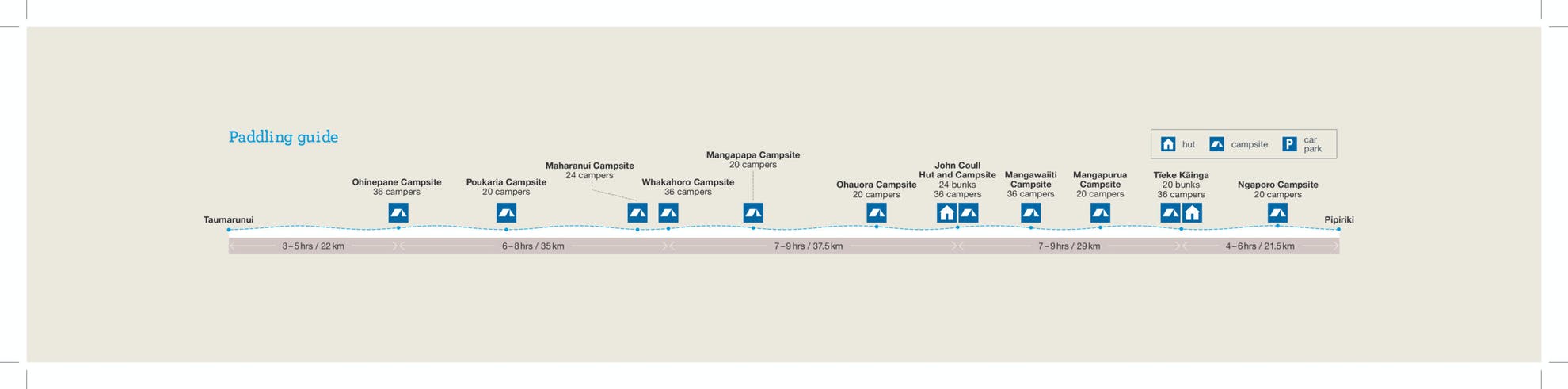 רוב מבצעי מסלול השייט משכירים קאנו או קיאק ועושים מסע של 3-5 ימים בנהר, שמתחיל בעיירה טאומארנואי, (מסע של 5 ימים) או פאקאהורו (מסע של 3 ימים).