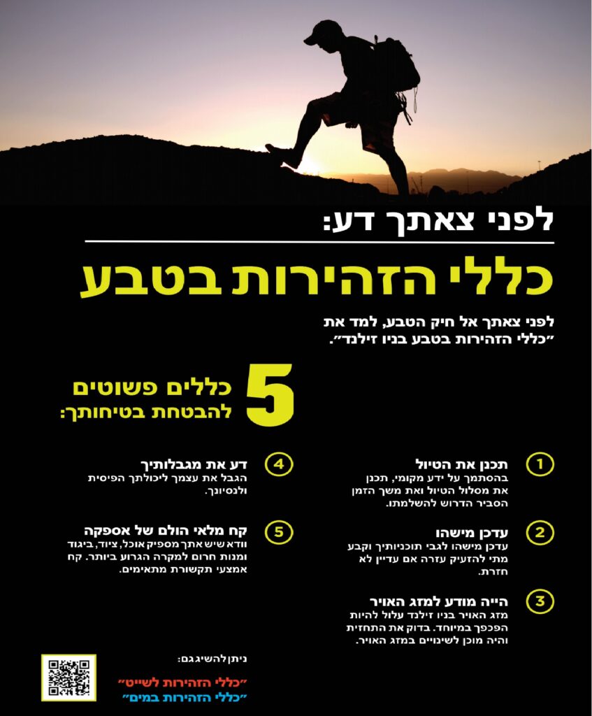 ודאו שמישהו יודע שיצאתם לדרך – איש הקשר יצטרך לדעת להזעיק עזרה במידה ולא יצרתם איתו קשר עד זמן שהוסכם בינכם. לא בטוחים עם מי לדבר? מוזמנים למלא את טופס היציאה לטרק שלנו. נשמח להיות שם בשבילכם